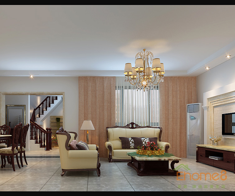 彩虹城躍層中式客廳效果圖