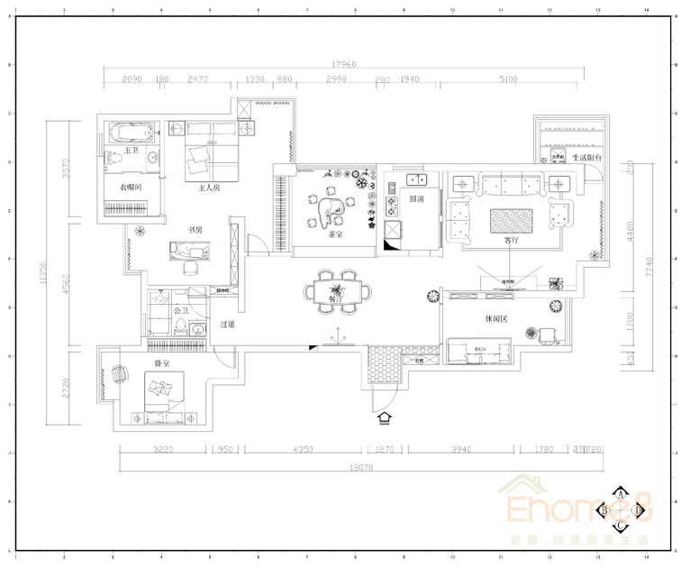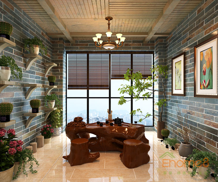 彩虹城三房一廳113㎡茶幾休息區(qū)田園風(fēng)格裝修效果圖
