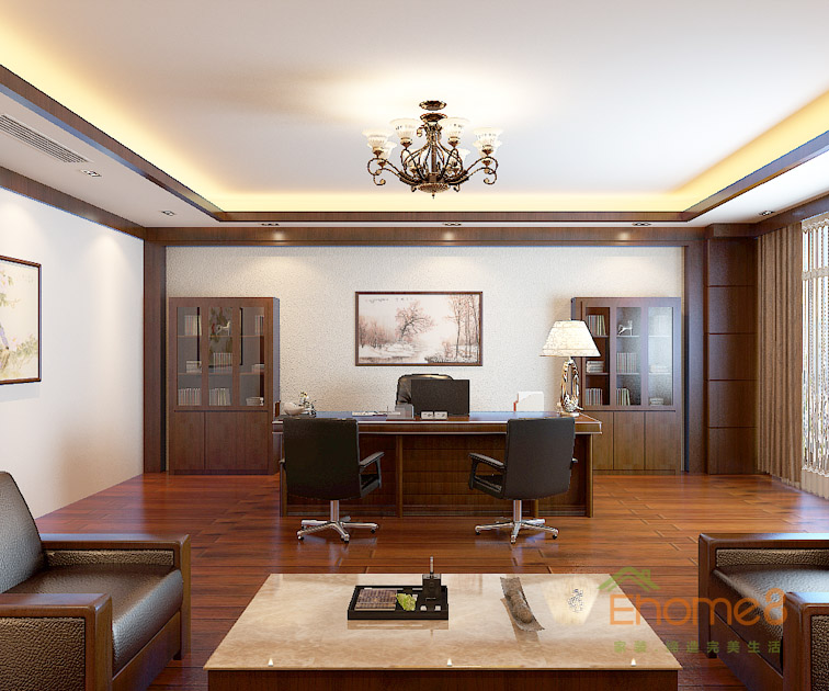 中式紅木裝修書房效果圖
