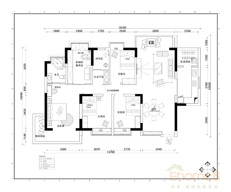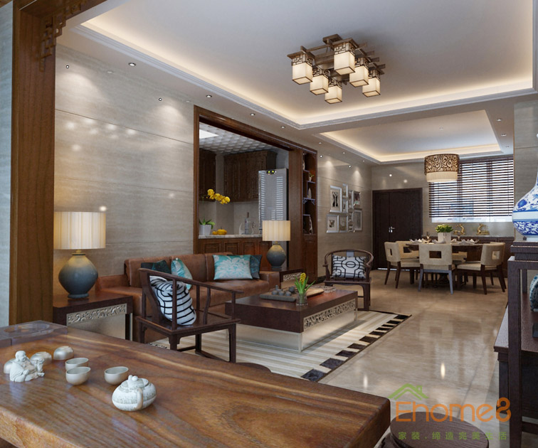 桃源居113㎡四房一廳中式風格裝修效果圖