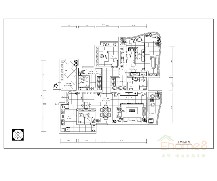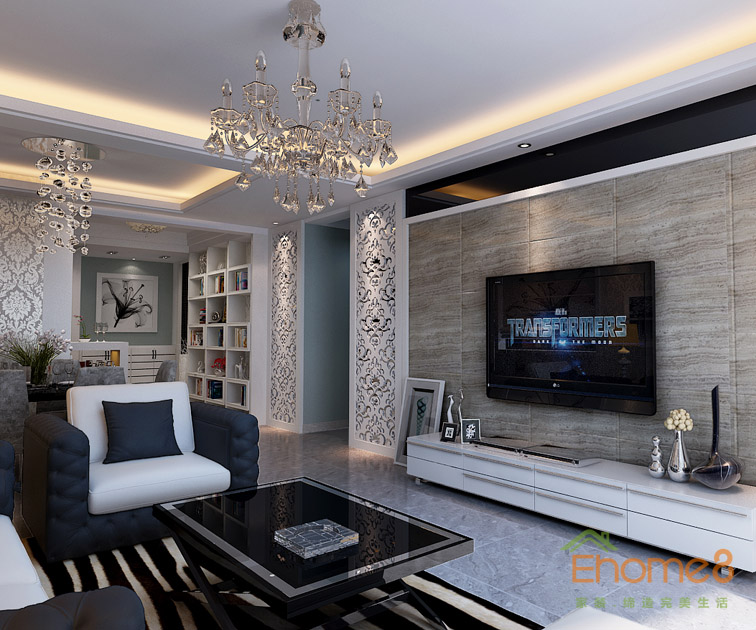 天鵝湖78㎡兩房一廳歐式風格裝修效果圖