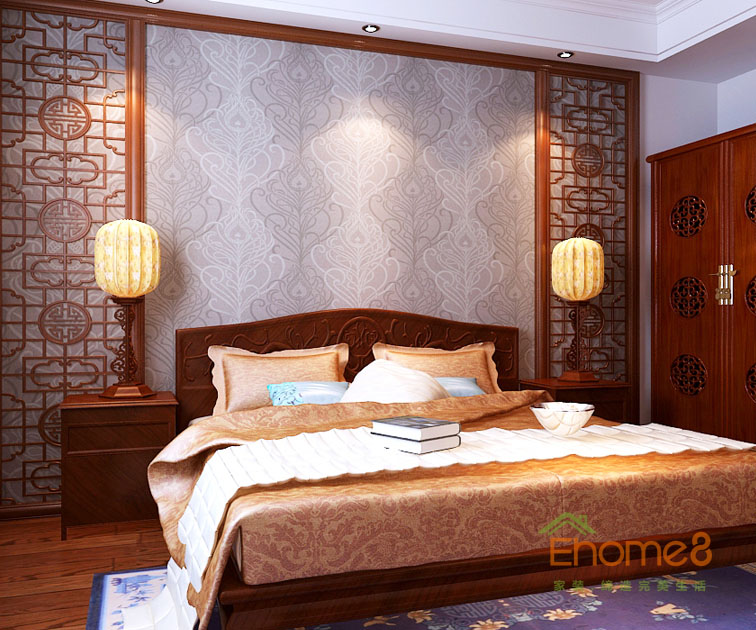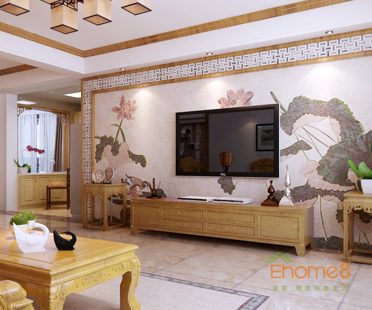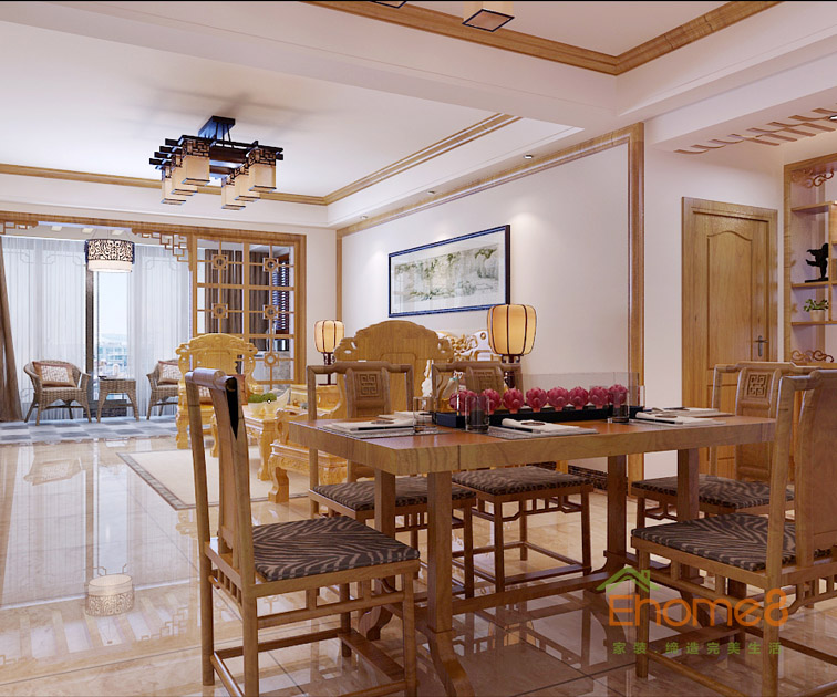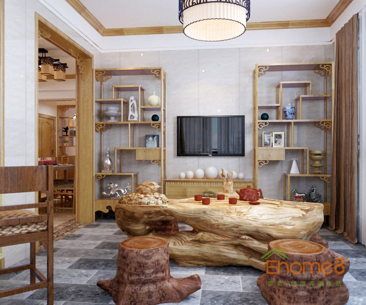 在水一方98㎡三房一廳中式原木風(fēng)格裝修效果圖