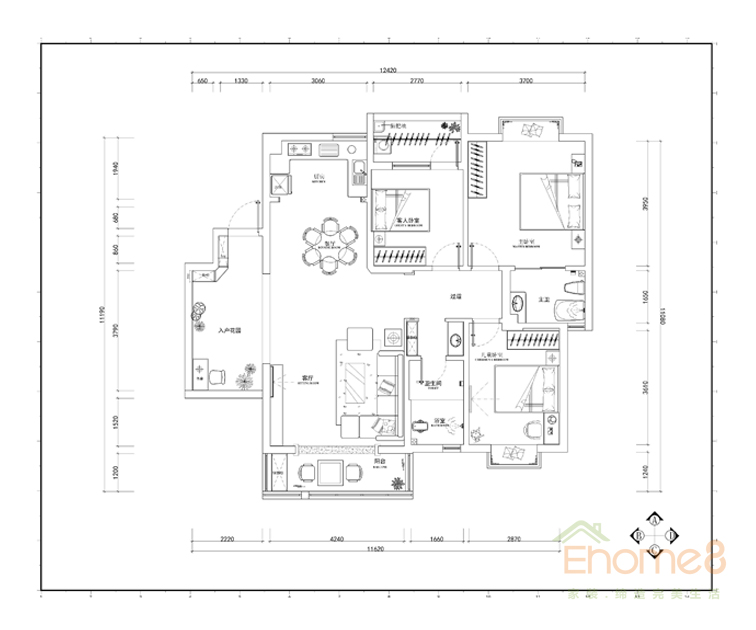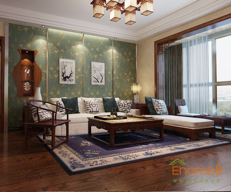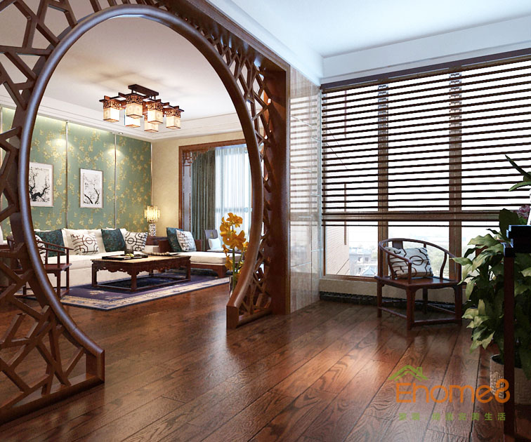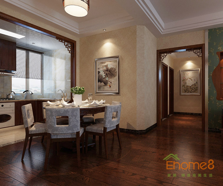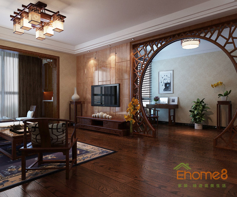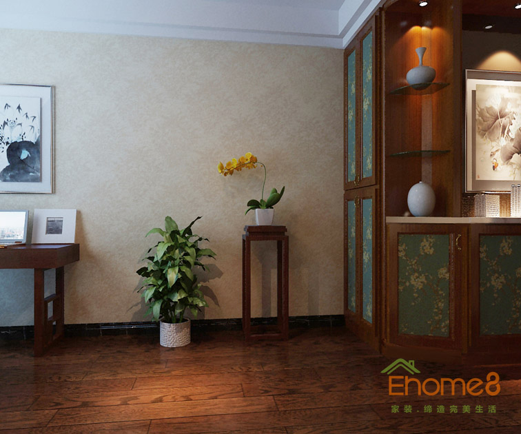 在水一方106㎡三房一廳中式風格裝修效果圖