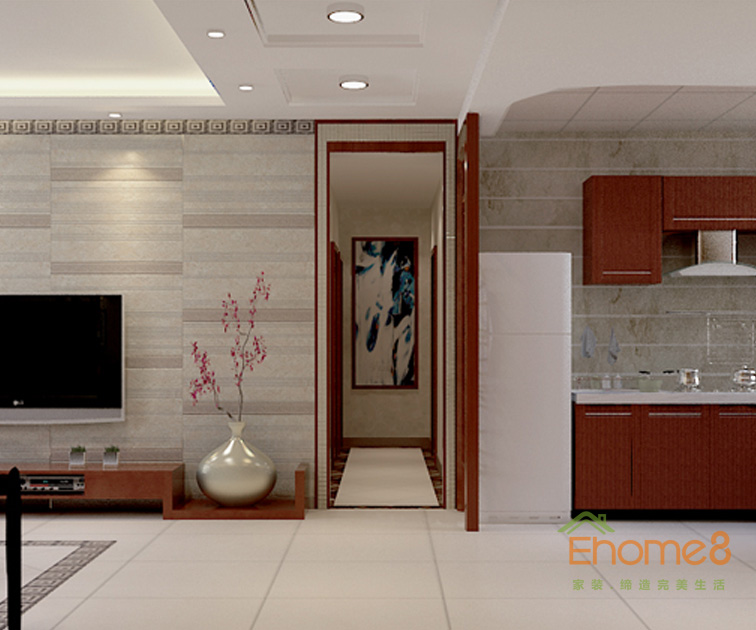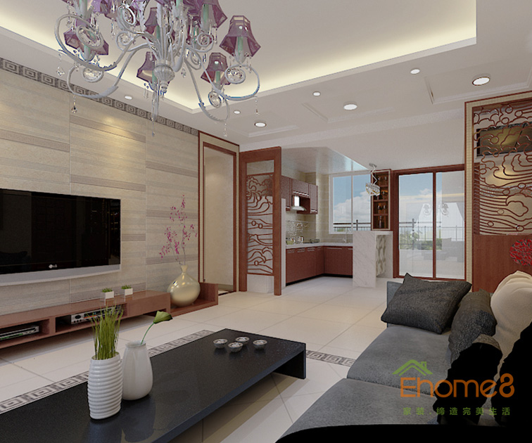 在水一方72㎡兩房一廳中式風格裝修效果圖