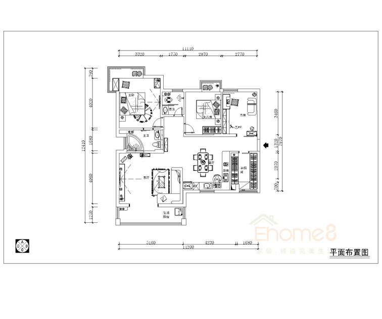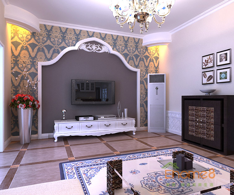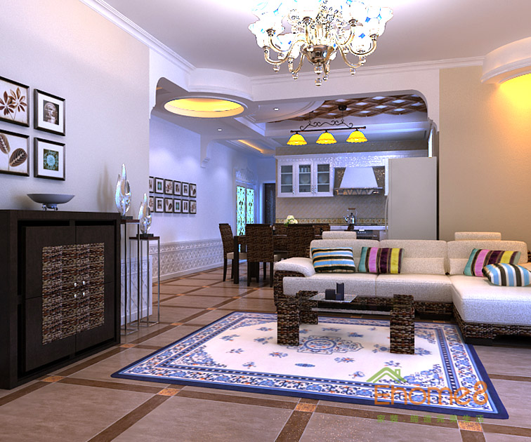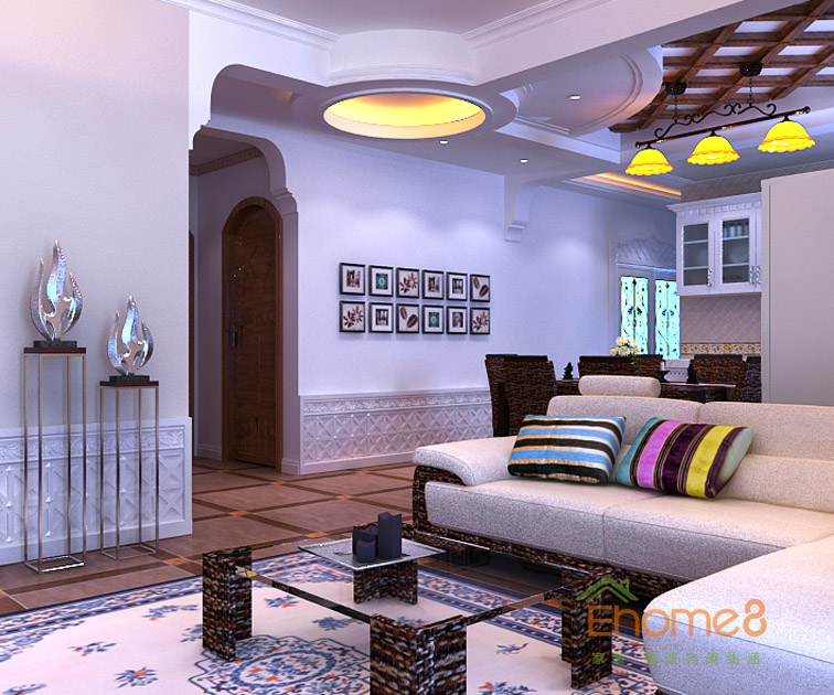 ?兆安現代城78㎡兩房一廳地中海北非風格裝修效果圖