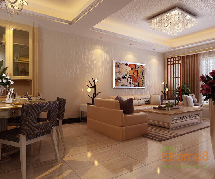 陽光100 99㎡三房一廳現(xiàn)代中式風(fēng)格裝修效果圖