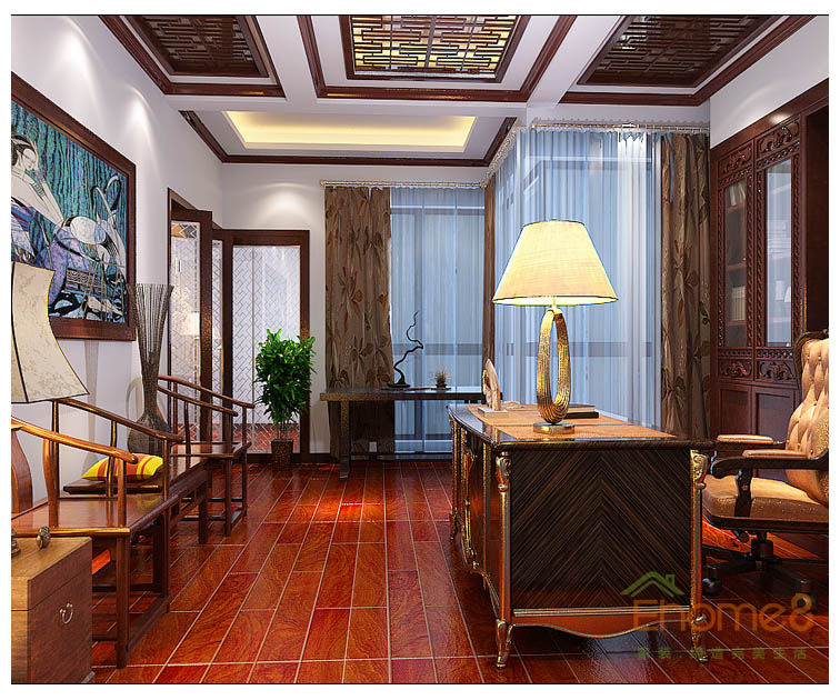 中式紅木裝修書房效果圖