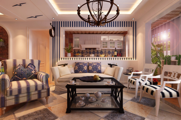 盛世中華三房一廳90㎡地中海裝修效果圖