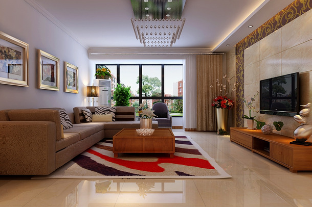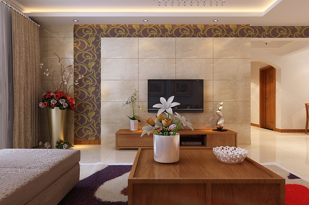 山語城兩房一廳70平米中式裝修風格效果圖(一)