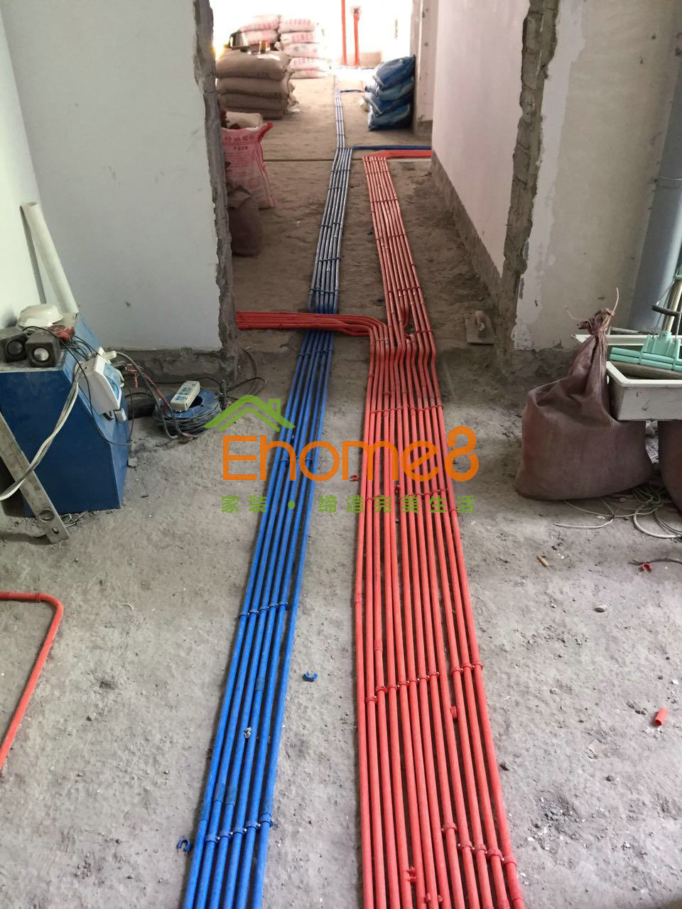 水電驗(yàn)收通過(guò),運(yùn)送瓷磚及水泥砂漿等