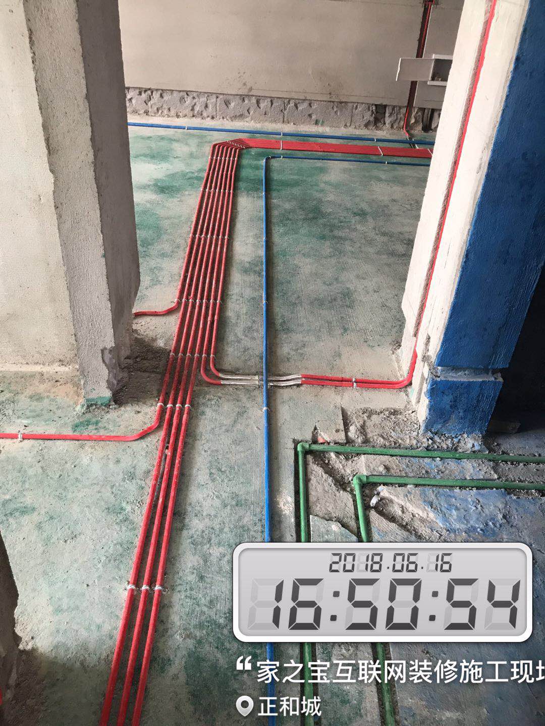 單管單槽,按國標工藝走線管水管,橫平豎直,八字拐角,采用德系歐標的水電材料