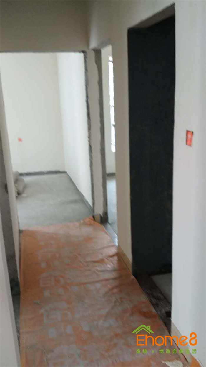 • 開始鋪磚,先把廚房的墻磚鋪出來,先把櫥柜的尺寸給量,并做好成品保護