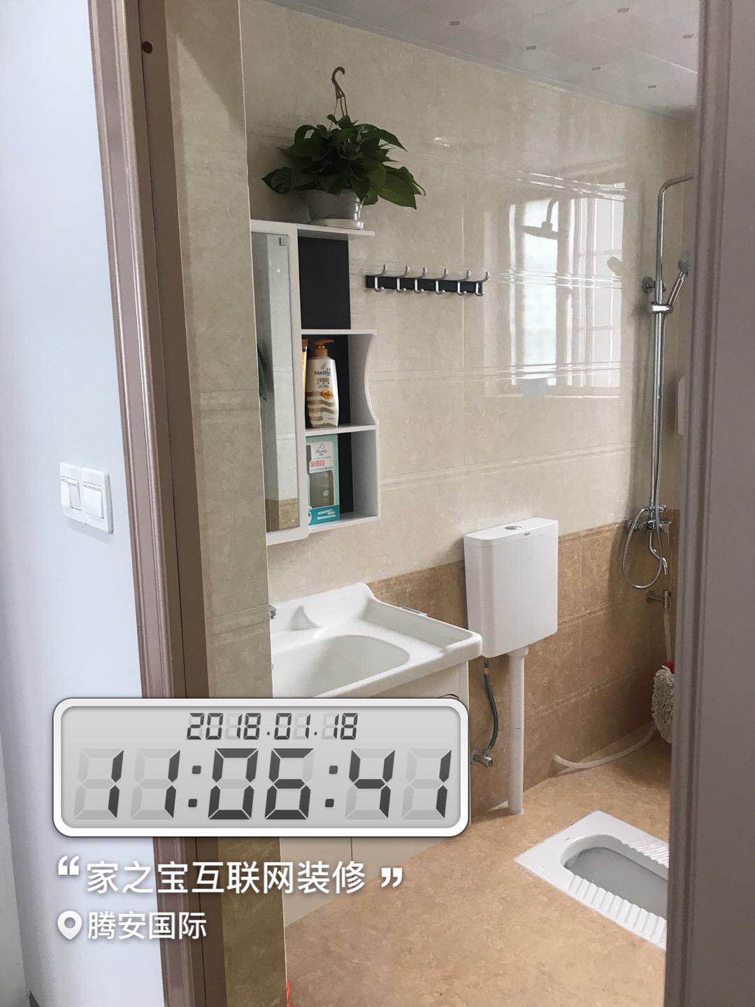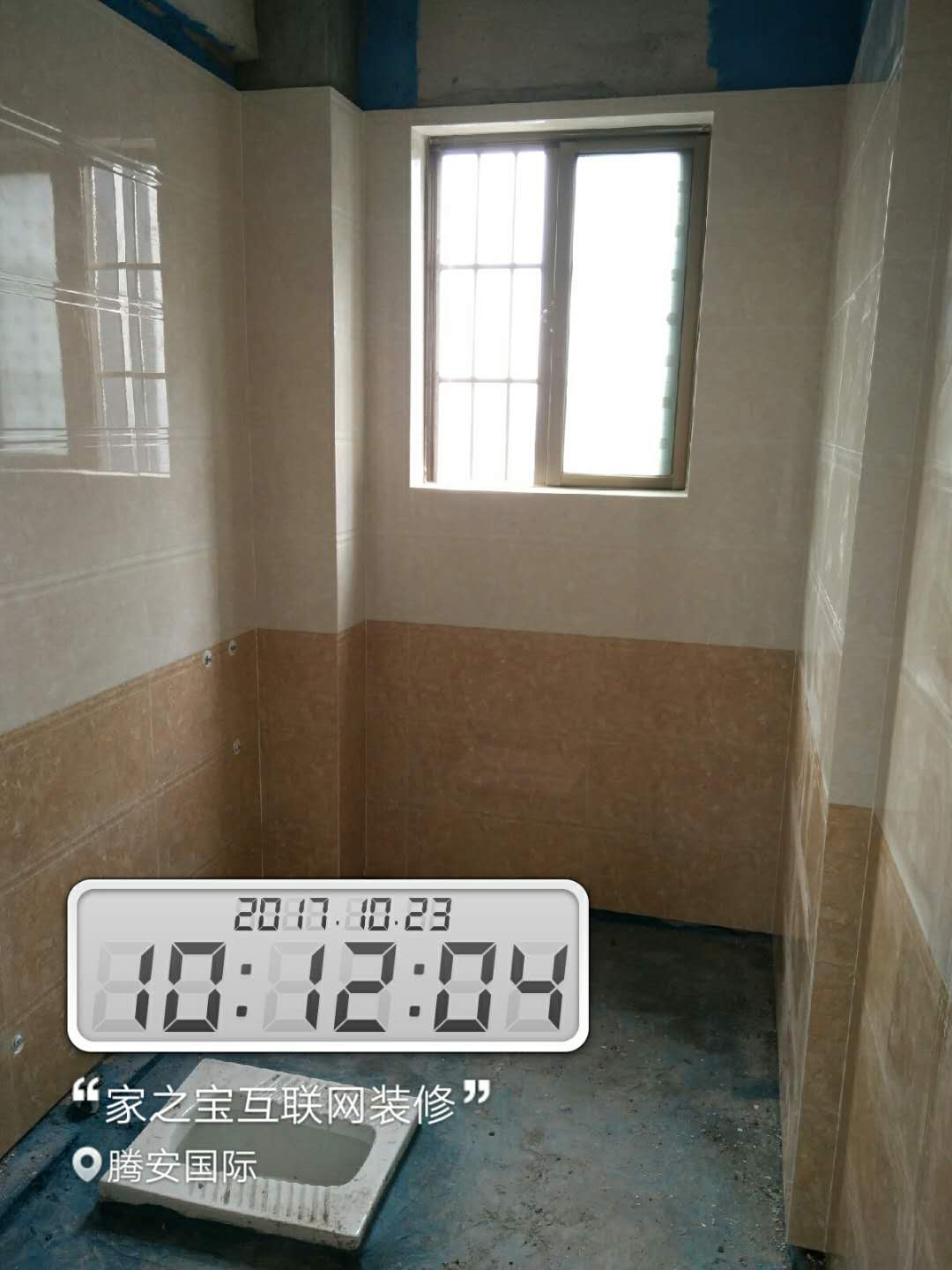 • 墻磚鋪貼,使用水平儀投射水平線,陽角處采用磨邊45°碰角工藝。